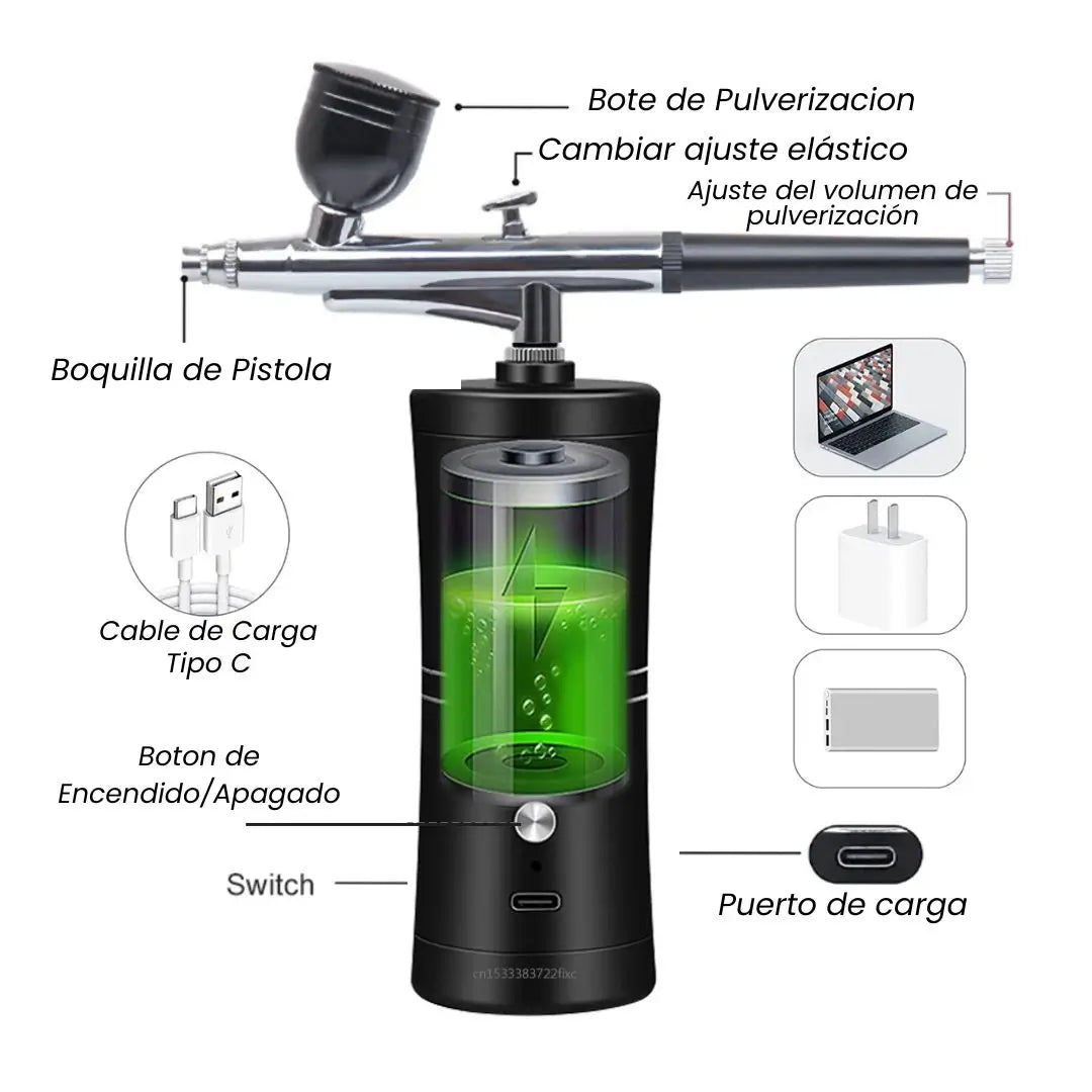 ¡La herramienta que tu creatividad estaba esperando! 🎨✨ Descubre el aerógrafo inalámbrico que transforma lo común en arte, ideal para belleza, uñas, barbería, pastelería y más