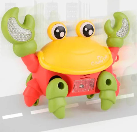 No tóxico y libre de ABS, sin bordes afilados ni piezas pequeñas, este lindo cangrejito se mueve con efectos de luz LED