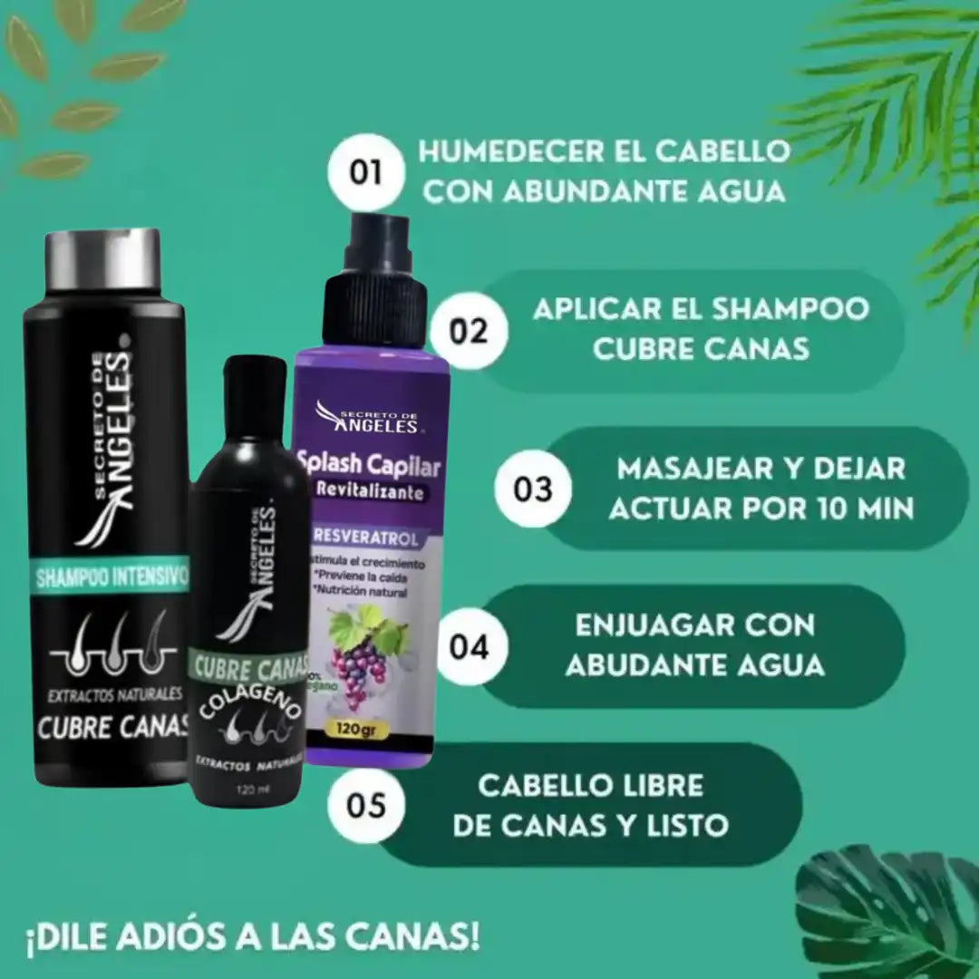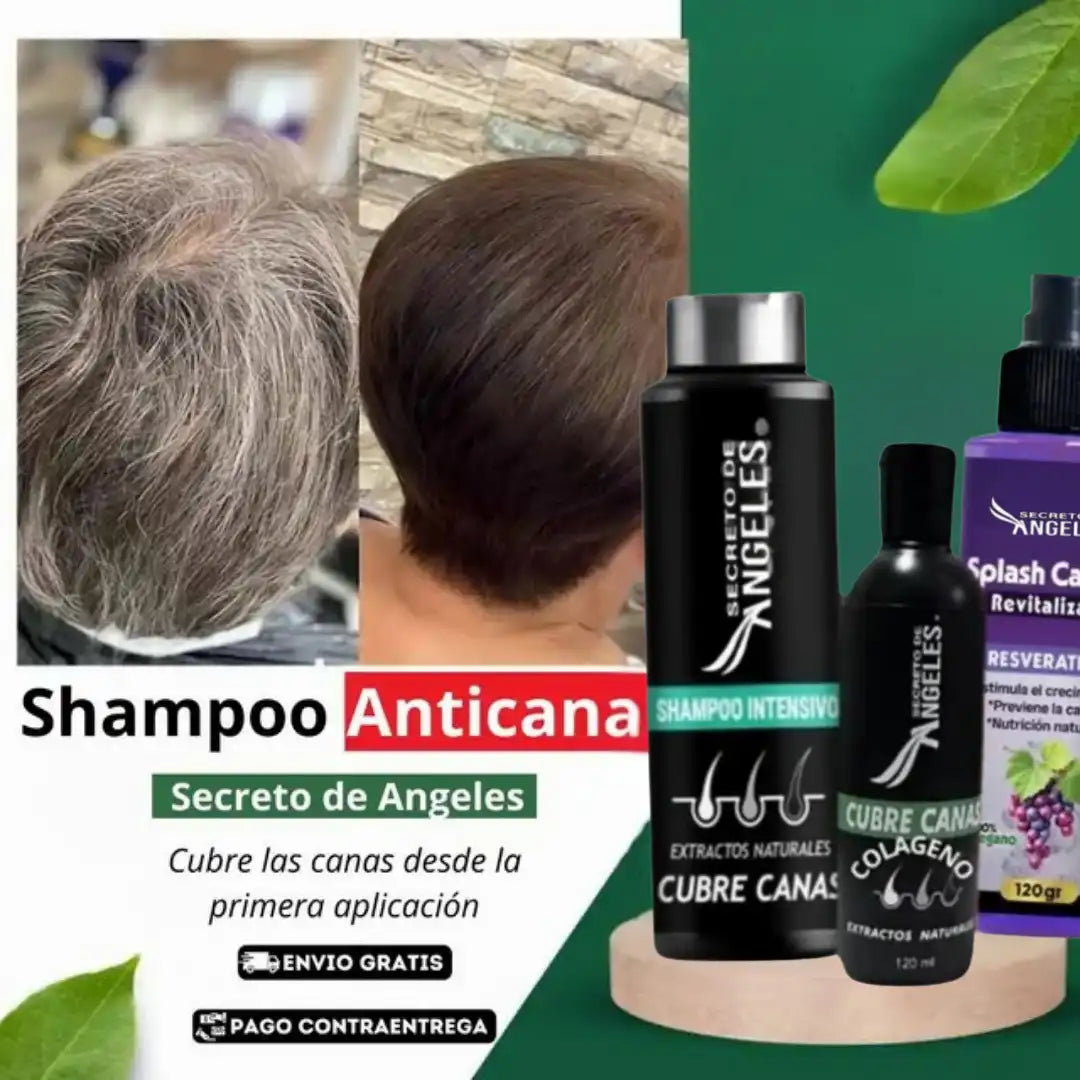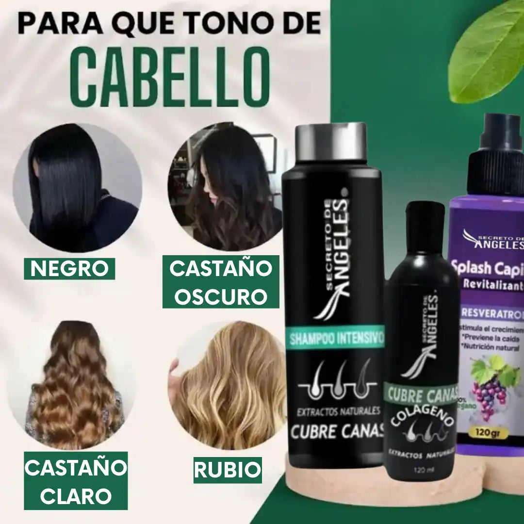 Paga 2 lleva 3 Shampoo Cubre Canas Secreto de Ángeles➕Colágeno y Resveratrol GRATIS🎁 x 139.700