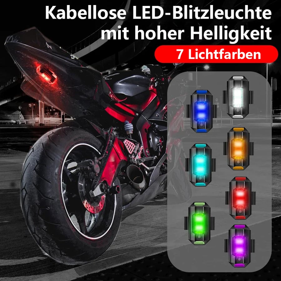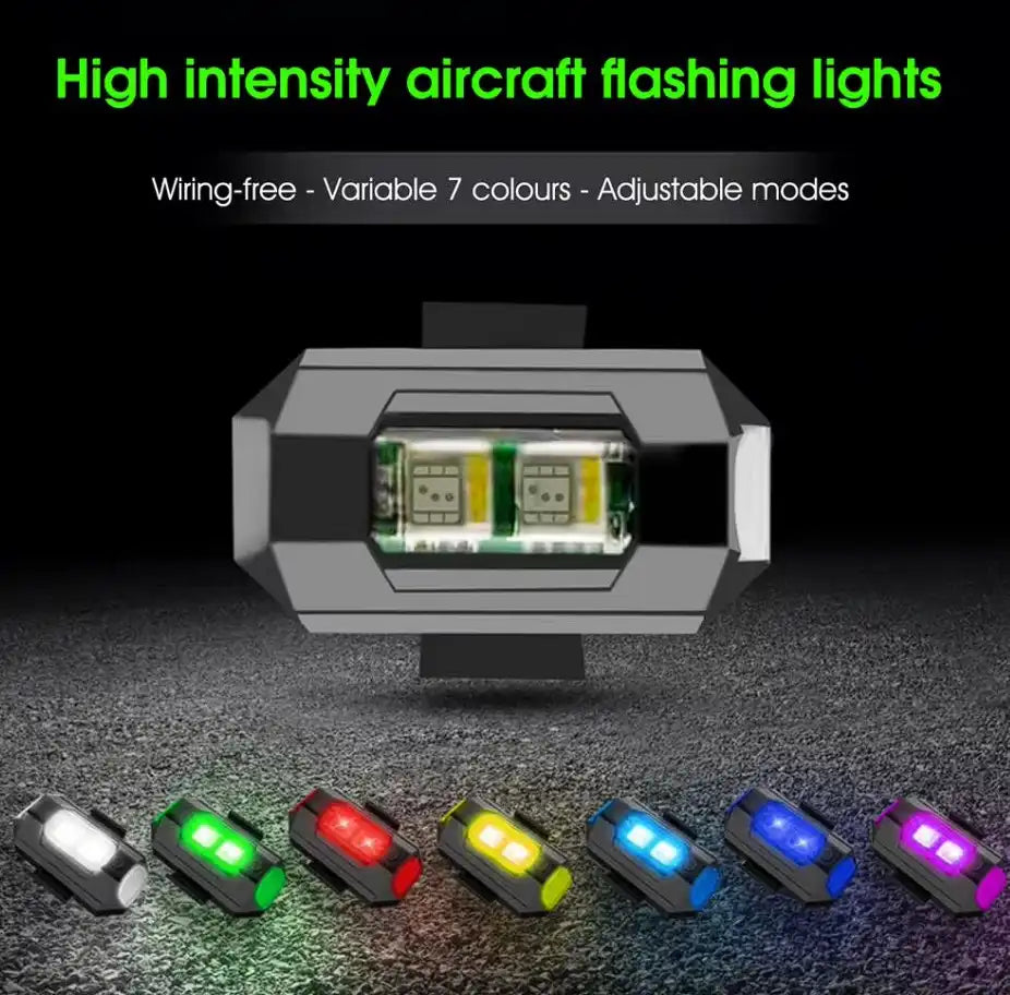 Nuestras luces están disponibles en 7 colores y se pueden configurar para que parpadeen o se mantengan fijas.