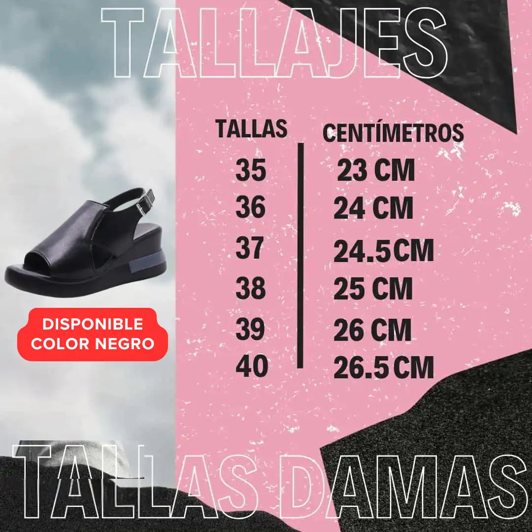 Las sandalias tiene una correa elástica ajustable. Se adapta a la perfección al tobillo. Y también, el empeine es algo elástico, así que vale para pie ancho o delgado. Apta para cualquier edad.